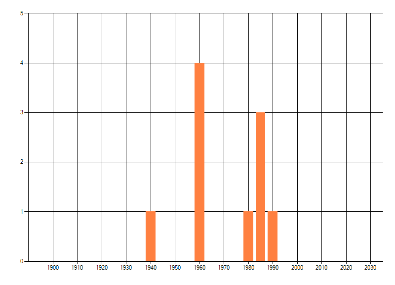 Het aantal atlasblokken (5x5 km) waarin de soort is gemeld binnen een periode van vijf jaar (vanaf 1980) of twintig jaar. Niet gecorrigeerd voor waarnemersinspanning en het aantal doorgegeven waarnemingen kan sterk variëren per periode, dus een trend in verspreiding kan hier niet direct uit worden afgelezen. Het opgegeven jaartal is het eerste jaar van de periode. Bron: gevalideerde waarnemingen uit de NDFF.