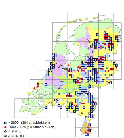 Bron: FLORON - Gemodelleerd op basis van waarnemingen uit de NDFF voor de periode 2000-2021.