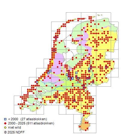 Bron: FLORON - Gemodelleerd op basis van waarnemingen uit de NDFF voor de periode 2000-2021.