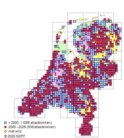 Bron: FLORON - Gemodelleerd op basis van waarnemingen uit de NDFF voor de periode 2000-2021.