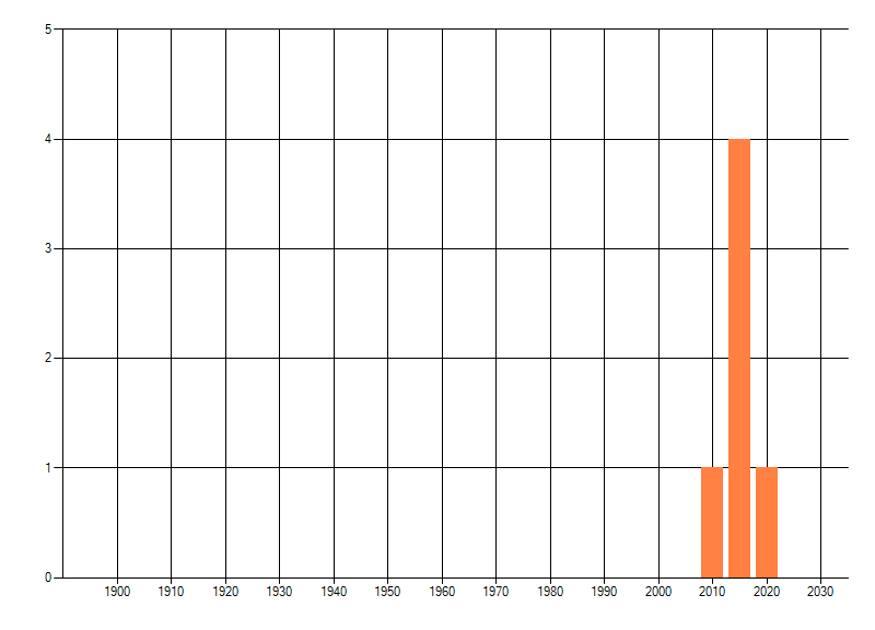 Het aantal atlasblokken (5x5 km) waarin de soort is gemeld binnen een periode van vijf jaar (vanaf 1980) of twintig jaar. Niet gecorrigeerd voor waarnemersinspanning en het aantal doorgegeven waarnemingen kan sterk variëren per periode, dus een trend in verspreiding kan hier niet direct uit worden afgelezen. Het opgegeven jaartal is het eerste jaar van de periode. Bron: gevalideerde waarnemingen uit de NDFF.