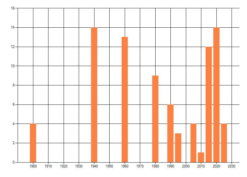 dus een trend in verspreiding kan hier niet direct uit worden afgelezen. Het opgegeven jaartal is het eerste jaar van de