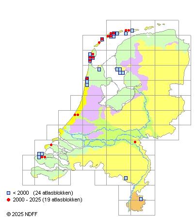 CC BY-NC-SA 3.0 NLVerspreidingNederlandZeer zeldzaam op de Waddeneilanden, in Zeeland (op Walcheren), op Wieringen, in de duinen (o.a. bij Bergen) en aan de kust van Gaasterland in Fryslân.