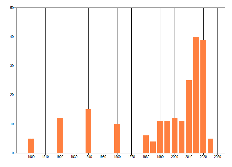 dus een trend in verspreiding kan hier niet direct uit worden afgelezen. Het opgegeven jaartal is het eerste jaar van de