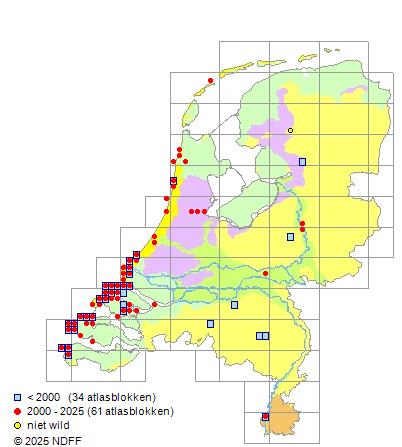 VlaanderenZeer zeldzaam, maar plaatselijk vrij algemeen langs de kust.