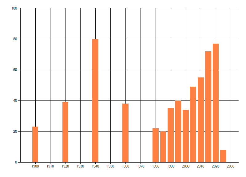 dus een trend in verspreiding kan hier niet direct uit worden afgelezen. Het opgegeven jaartal is het eerste jaar van de