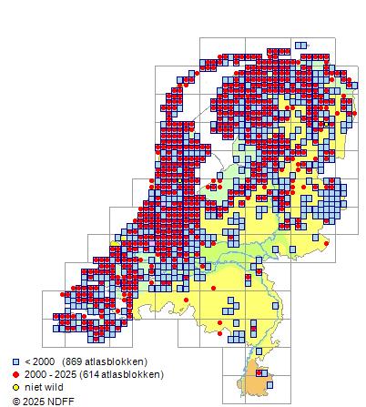 Bron: FLORON - Gemodelleerd op basis van waarnemingen uit de NDFF voor de periode 2000-2021.