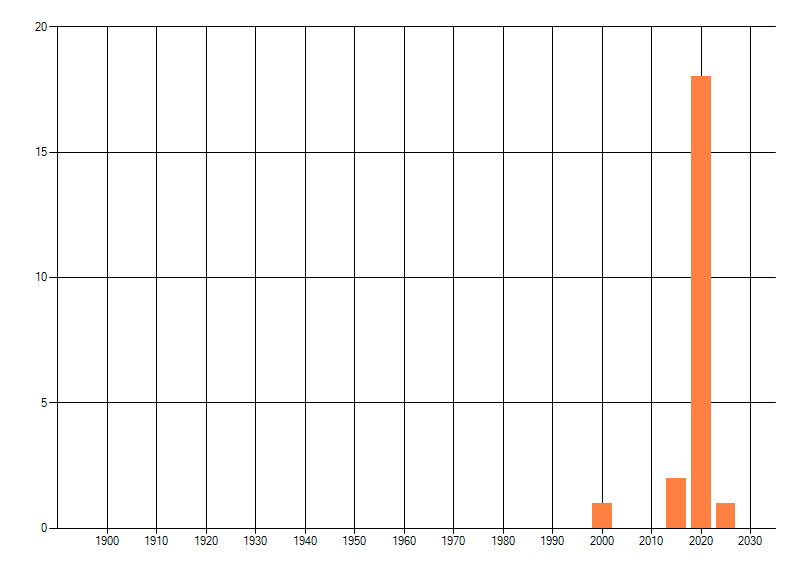 Het aantal atlasblokken (5x5 km) waarin de soort is gemeld binnen een periode van vijf jaar (vanaf 1980) of twintig jaar. Niet gecorrigeerd voor waarnemersinspanning en het aantal doorgegeven waarnemingen kan sterk variëren per periode, dus een trend in verspreiding kan hier niet direct uit worden afgelezen. Het opgegeven jaartal is het eerste jaar van de periode. Bron: gevalideerde waarnemingen uit de NDFF.