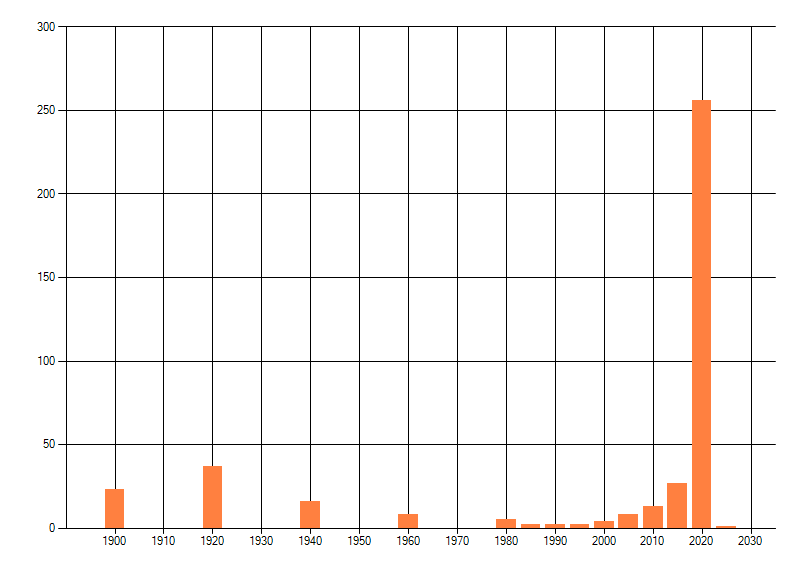 Het aantal atlasblokken (5x5 km) waarin de soort is gemeld binnen een periode van vijf jaar (vanaf 1980) of twintig jaar. Niet gecorrigeerd voor waarnemersinspanning en het aantal doorgegeven waarnemingen kan sterk variëren per periode, dus een trend in verspreiding kan hier niet direct uit worden afgelezen. Het opgegeven jaartal is het eerste jaar van de periode. Bron: gevalideerde waarnemingen uit de NDFF.