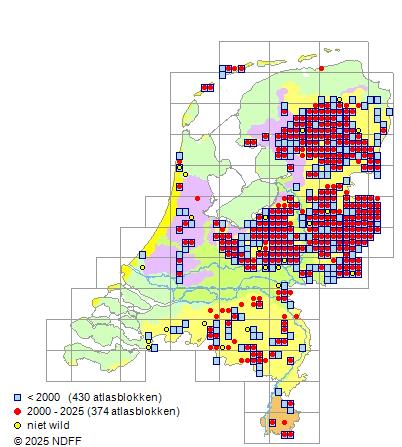 Bron: FLORON - Gemodelleerd op basis van waarnemingen uit de NDFF voor de periode 2000-2021.