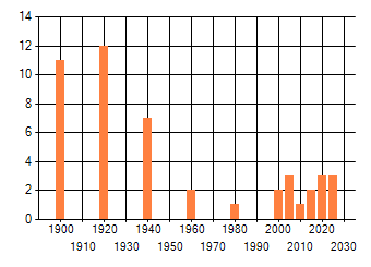 dus een trend in verspreiding kan hier niet direct uit worden afgelezen. Het opgegeven jaartal is het eerste jaar van de