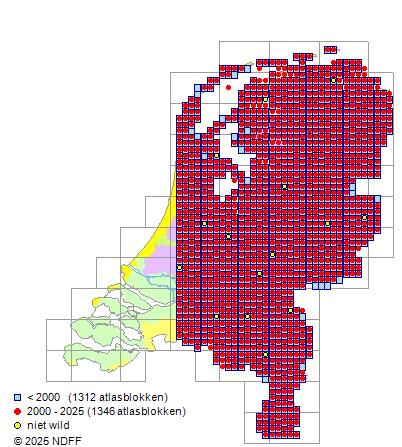 Bron: FLORON - Gemodelleerd op basis van waarnemingen uit de NDFF voor de periode 2000-2021.