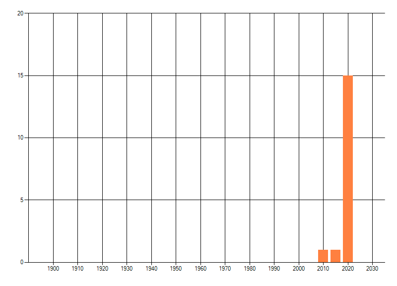 Het aantal atlasblokken (5x5 km) waarin de soort is gemeld binnen een periode van vijf jaar (vanaf 1980) of twintig jaar. Niet gecorrigeerd voor waarnemersinspanning en het aantal doorgegeven waarnemingen kan sterk variëren per periode, dus een trend in verspreiding kan hier niet direct uit worden afgelezen. Het opgegeven jaartal is het eerste jaar van de periode. Bron: gevalideerde waarnemingen uit de NDFF.