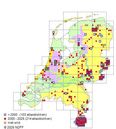 Bron: FLORON - Gemodelleerd op basis van waarnemingen uit de NDFF voor de periode 2000-2021.