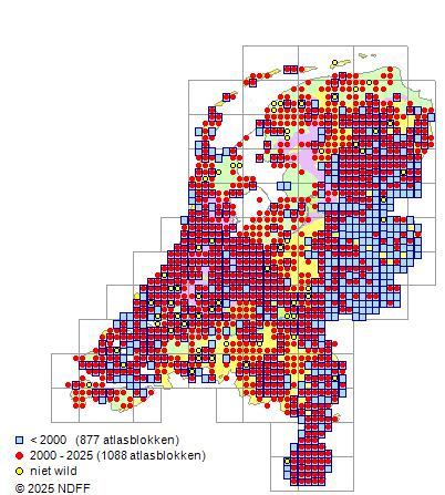 Bron: FLORON - Gemodelleerd op basis van waarnemingen uit de NDFF voor de periode 2000-2021.