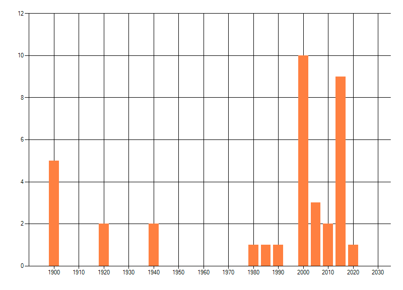 Het aantal atlasblokken (5x5 km) waarin de soort is gemeld binnen een periode van vijf jaar (vanaf 1980) of twintig jaar. Niet gecorrigeerd voor waarnemersinspanning en het aantal doorgegeven waarnemingen kan sterk variëren per periode, dus een trend in verspreiding kan hier niet direct uit worden afgelezen. Het opgegeven jaartal is het eerste jaar van de periode. Bron: gevalideerde waarnemingen uit de NDFF.