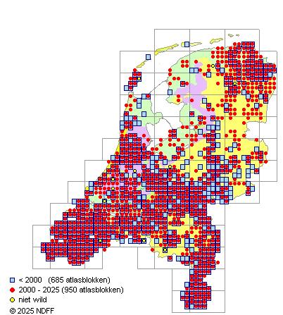 Bron: FLORON - Gemodelleerd op basis van waarnemingen uit de NDFF voor de periode 2000-2021.
