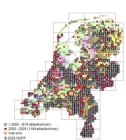 CC BY-NC-SA 3.0 NLVerspreidingNederlandVrij zeldzaam in Zuid-Limburg, Twente, de Achterhoek en bij Nijmegen. Elders voor het grootste deel niet oorspronkelijk wild, maar verwilderd en ingeburgerd vanuit tuinen.