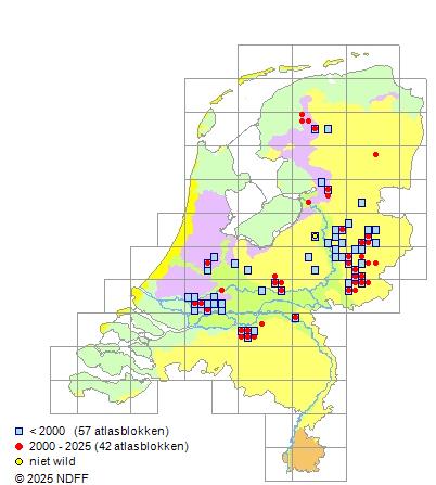 CC BY-NC-SA 3.0 NLVerspreidingNederlandZeer zeldzaam in laagveengebieden in Fryslân, in de Alblasserwaard, in de Gelderse Vallei, in Salland en in de Achterhoek.