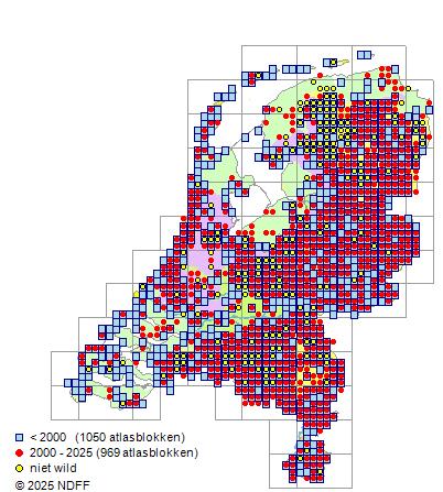 Bron: FLORON - Gemodelleerd op basis van waarnemingen uit de NDFF voor de periode 2000-2021.
