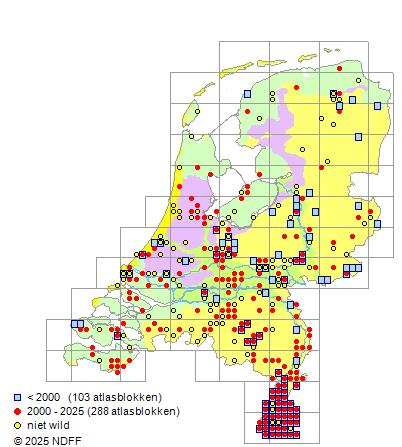 Bron: FLORON - Gemodelleerd op basis van waarnemingen uit de NDFF voor de periode 2000-2021.