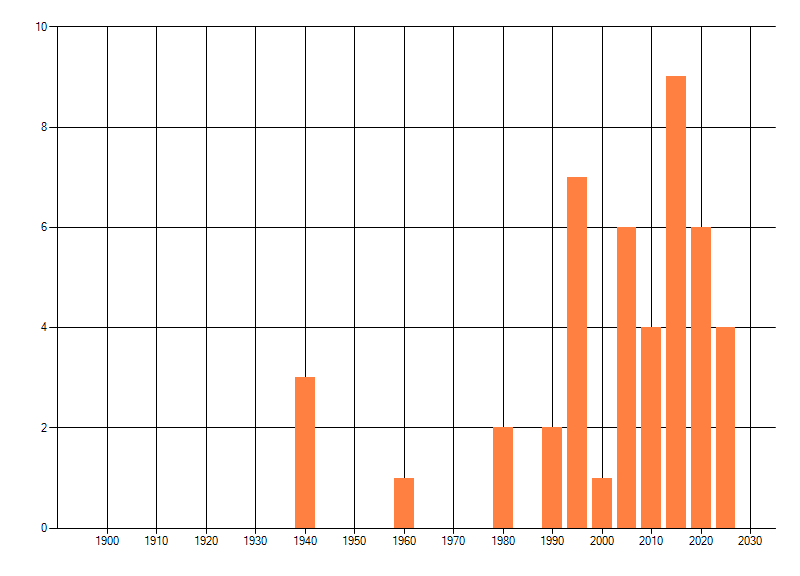 dus een trend in verspreiding kan hier niet direct uit worden afgelezen. Het opgegeven jaartal is het eerste jaar van de