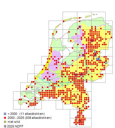 Bron: FLORON - Gemodelleerd op basis van waarnemingen uit de NDFF voor de periode 2000-2021.