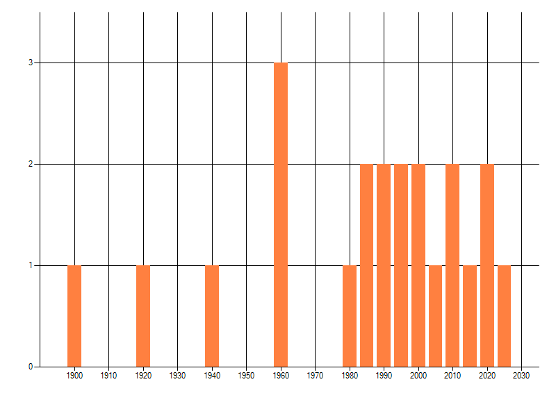 Het aantal atlasblokken (5x5 km) waarin de soort is gemeld binnen een periode van vijf jaar (vanaf 1980) of twintig jaar. Niet gecorrigeerd voor waarnemersinspanning en het aantal doorgegeven waarnemingen kan sterk variëren per periode, dus een trend in verspreiding kan hier niet direct uit worden afgelezen. Het opgegeven jaartal is het eerste jaar van de periode. Bron: gevalideerde waarnemingen uit de NDFF.