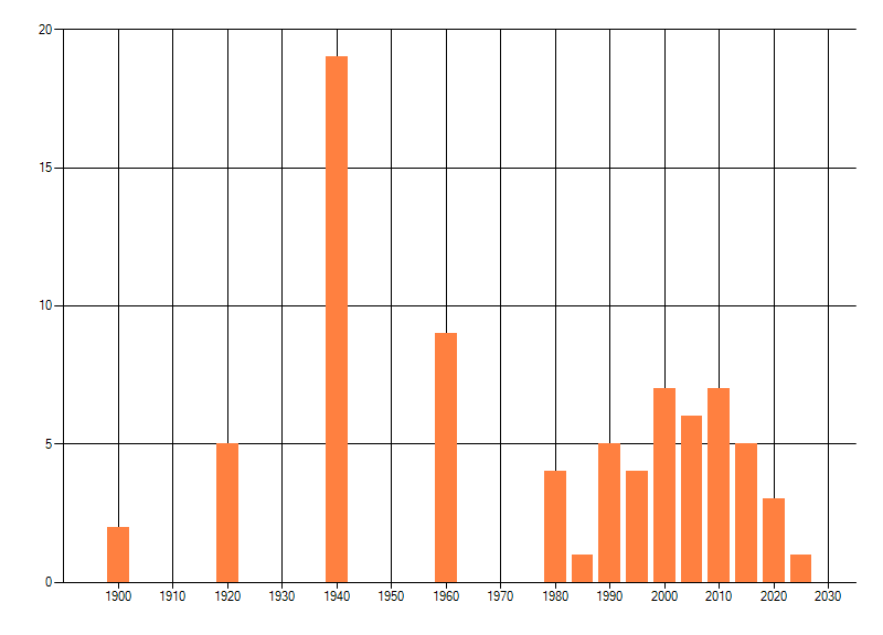 Het aantal atlasblokken (5x5 km) waarin de soort is gemeld binnen een periode van vijf jaar (vanaf 1980) of twintig jaar. Niet gecorrigeerd voor waarnemersinspanning en het aantal doorgegeven waarnemingen kan sterk variëren per periode, dus een trend in verspreiding kan hier niet direct uit worden afgelezen. Het opgegeven jaartal is het eerste jaar van de periode. Bron: gevalideerde waarnemingen uit de NDFF.
