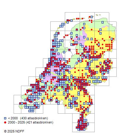 Bron: FLORON - Gemodelleerd op basis van waarnemingen uit de NDFF voor de periode 2000-2021.