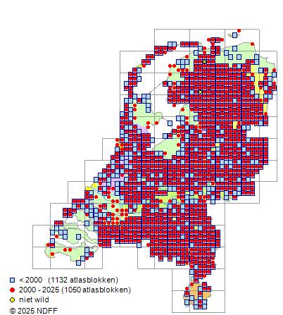 CC BY-NC-SA 3.0 NLVerspreidingNederlandVrij algemeen, maar zeldzaam in zeekleigebieden en het rivierengebied en zeer zeldzaam in Zeeland en Zuid-Limburg.