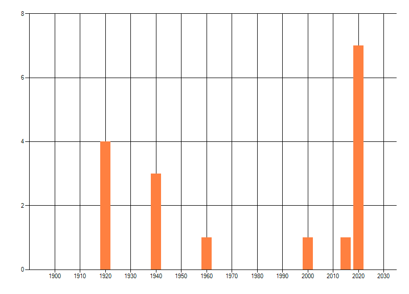 Het aantal atlasblokken (5x5 km) waarin de soort is gemeld binnen een periode van vijf jaar (vanaf 1980) of twintig jaar. Niet gecorrigeerd voor waarnemersinspanning en het aantal doorgegeven waarnemingen kan sterk variëren per periode, dus een trend in verspreiding kan hier niet direct uit worden afgelezen. Het opgegeven jaartal is het eerste jaar van de periode. Bron: gevalideerde waarnemingen uit de NDFF.