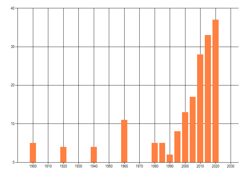 dus een trend in verspreiding kan hier niet direct uit worden afgelezen. Het opgegeven jaartal is het eerste jaar van de
