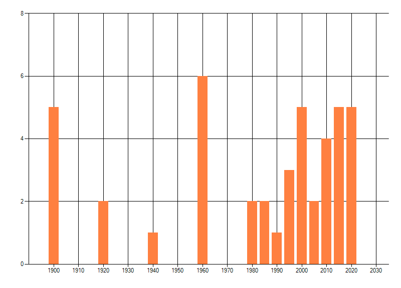 dus een trend in verspreiding kan hier niet direct uit worden afgelezen. Het opgegeven jaartal is het eerste jaar van de