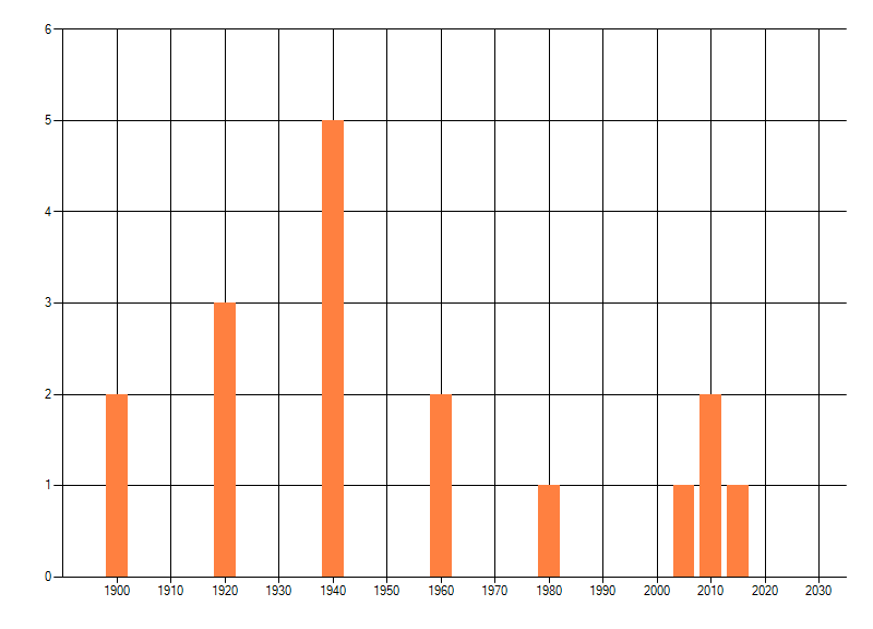 Het aantal atlasblokken (5x5 km) waarin de soort is gemeld binnen een periode van vijf jaar (vanaf 1980) of twintig jaar. Niet gecorrigeerd voor waarnemersinspanning en het aantal doorgegeven waarnemingen kan sterk variëren per periode, dus een trend in verspreiding kan hier niet direct uit worden afgelezen. Het opgegeven jaartal is het eerste jaar van de periode. Bron: gevalideerde waarnemingen uit de NDFF.