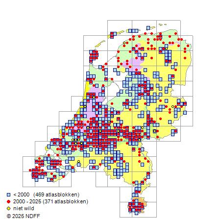 CC BY-NC-SA 3.0 NLVerspreidingNederlandZeldzaam in het rivierengebied, laagveengebieden en in Noord-Brabant. Elders zeer zeldzaam.