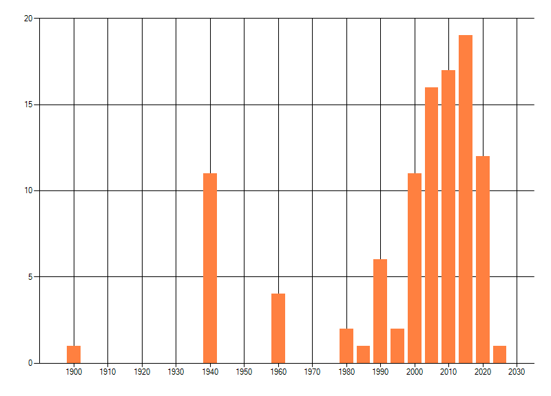 dus een trend in verspreiding kan hier niet direct uit worden afgelezen. Het opgegeven jaartal is het eerste jaar van de