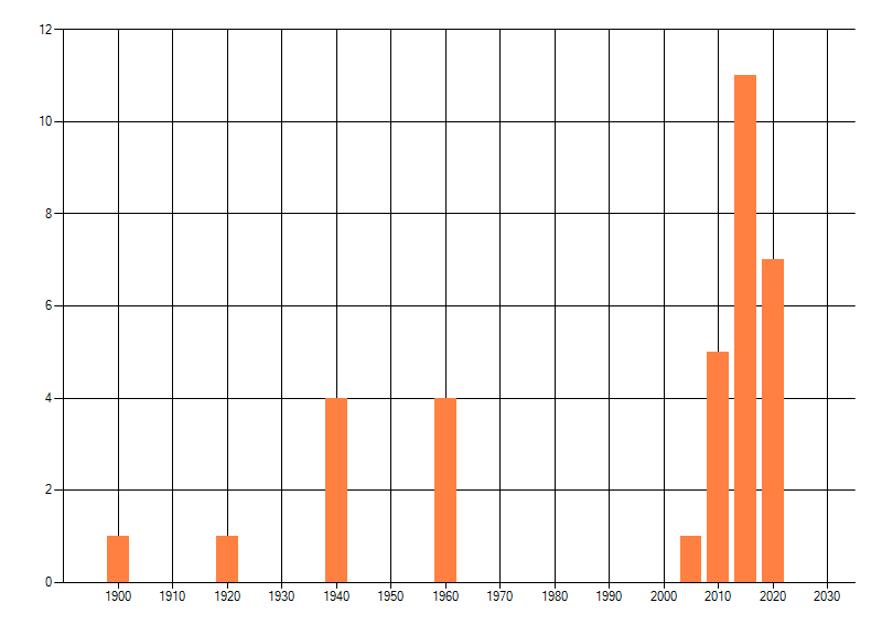 Het aantal atlasblokken (5x5 km) waarin de soort is gemeld binnen een periode van vijf jaar (vanaf 1980) of twintig jaar. Niet gecorrigeerd voor waarnemersinspanning en het aantal doorgegeven waarnemingen kan sterk variëren per periode, dus een trend in verspreiding kan hier niet direct uit worden afgelezen. Het opgegeven jaartal is het eerste jaar van de periode. Bron: gevalideerde waarnemingen uit de NDFF.