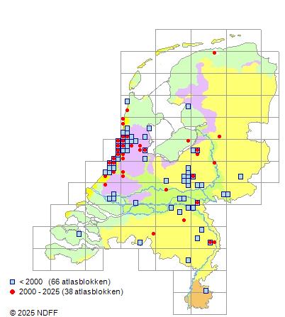 CC BY-NC-SA 3.0 NLVerspreidingNederlandZeldzaam in de Hollandse duinen tussen Castricum en Katwijk en zeer zeldzaam in het rivierengebied, in het midden van het land en in Zeeland. Sinds 1945 ingeburgerd.