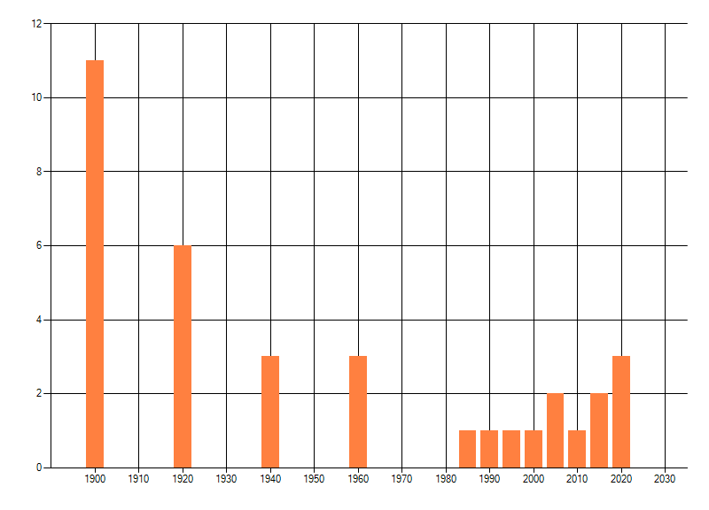 dus een trend in verspreiding kan hier niet direct uit worden afgelezen. Het opgegeven jaartal is het eerste jaar van de