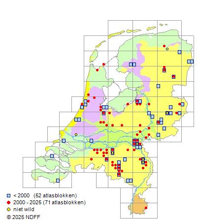 Bron: FLORON - Gemodelleerd op basis van waarnemingen uit de NDFF voor de periode 2000-2021.