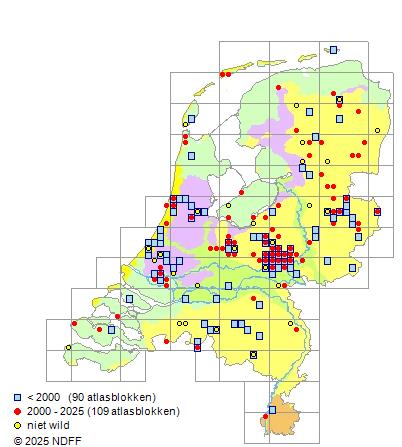 Bron: FLORON - Gemodelleerd op basis van waarnemingen uit de NDFF voor de periode 2000-2021.