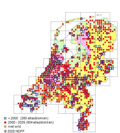 Bron: FLORON - Gemodelleerd op basis van waarnemingen uit de NDFF voor de periode 2000-2021.