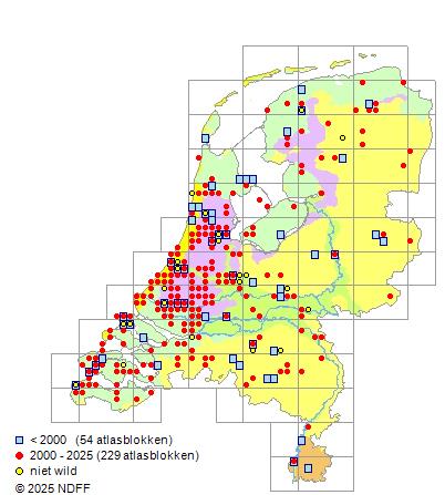 CC BY-NC-SA 3.0 NLVerspreidingNederlandZeer zeldzaam ingeburgerd, met name in in het kustgebied (voornamelijk in het Deltagebied).