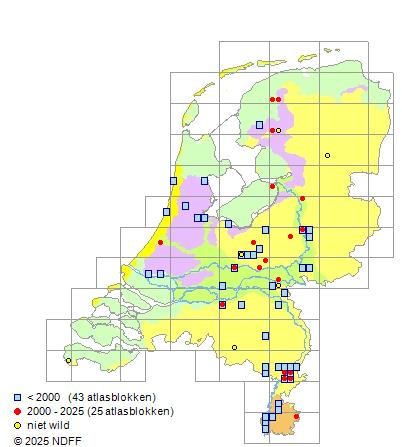 Bron: FLORON - Gemodelleerd op basis van waarnemingen uit de NDFF voor de periode 2000-2021.