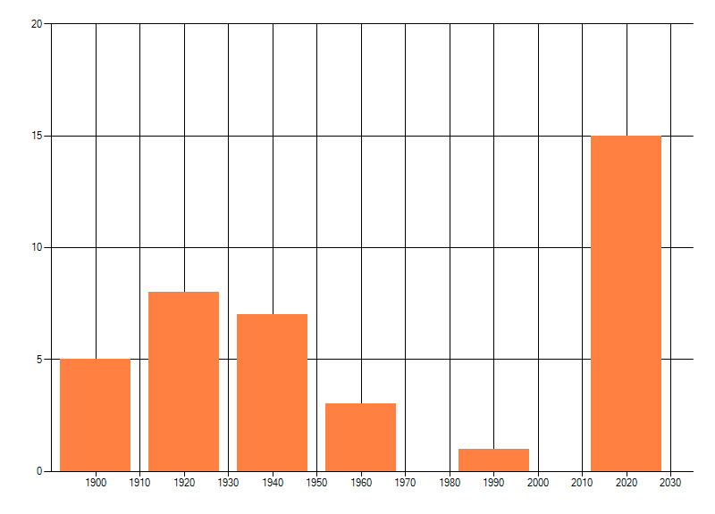 Het aantal atlasblokken (5x5 km) waarin de soort is gemeld binnen een periode van vijf jaar (vanaf 1980) of twintig jaar. Niet gecorrigeerd voor waarnemersinspanning en het aantal doorgegeven waarnemingen kan sterk variëren per periode, dus een trend in verspreiding kan hier niet direct uit worden afgelezen. Het opgegeven jaartal is het eerste jaar van de periode. Bron: gevalideerde waarnemingen uit de NDFF.