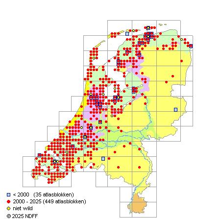 Bron: FLORON - Gemodelleerd op basis van waarnemingen uit de NDFF voor de periode 2000-2021.