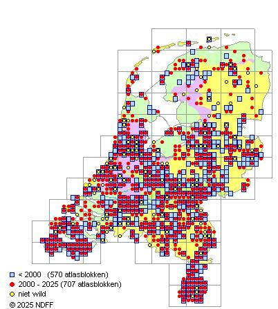 Bron: FLORON - Gemodelleerd op basis van waarnemingen uit de NDFF voor de periode 2000-2021.
