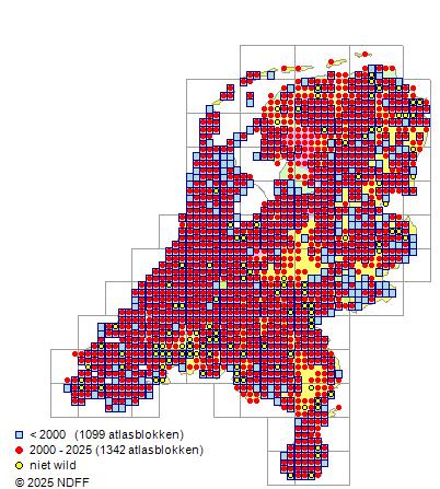 Bron: FLORON - Gemodelleerd op basis van waarnemingen uit de NDFF voor de periode 2000-2021.