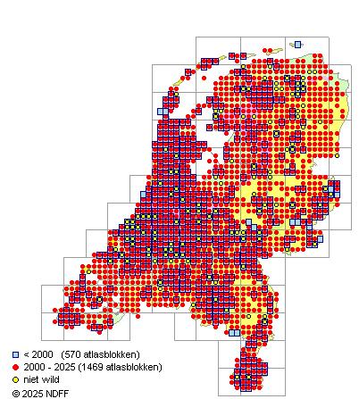 Bron: FLORON - Gemodelleerd op basis van waarnemingen uit de NDFF voor de periode 2000-2021.